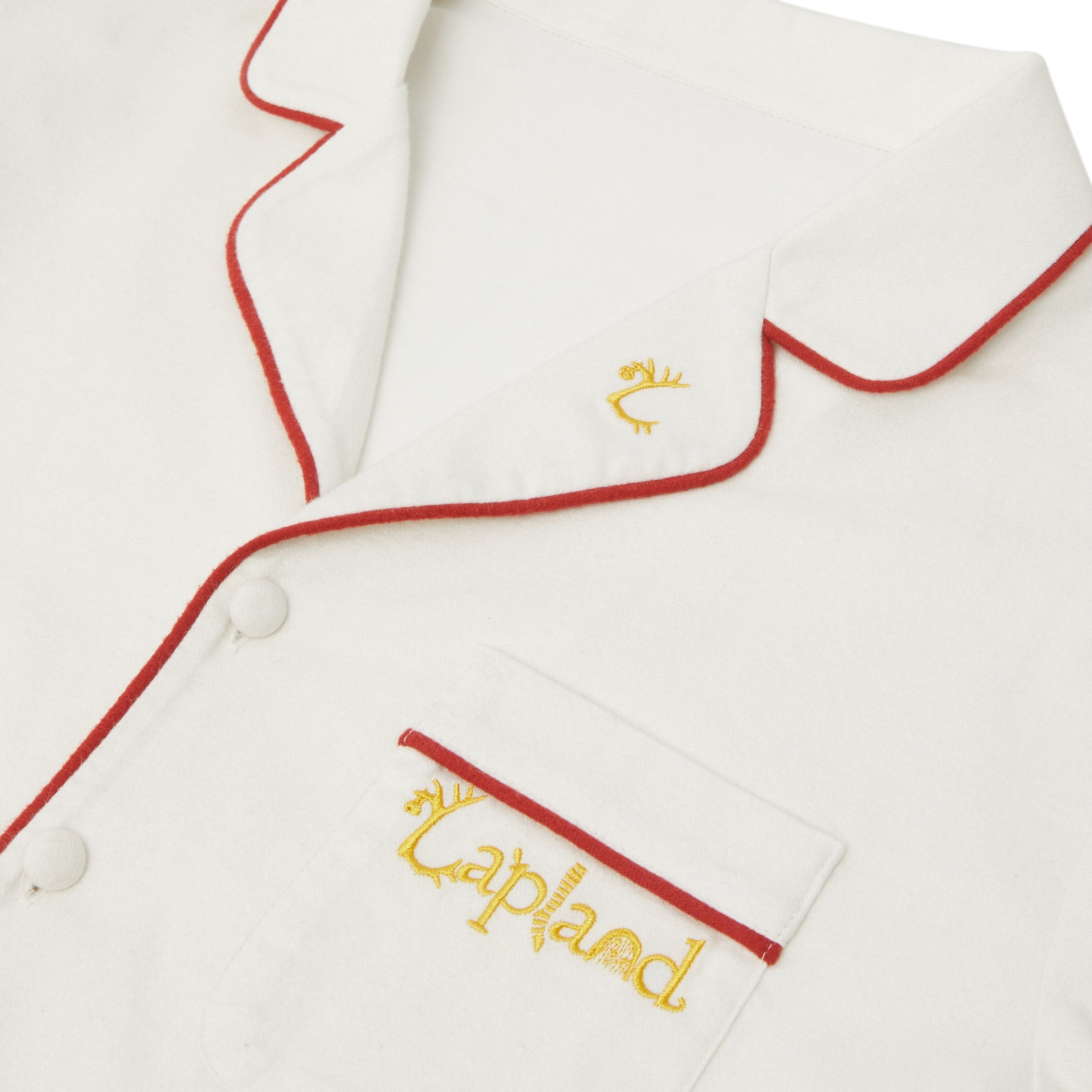 Worn by every Elf in Lapland on Christmas Eve, these pyjamas are as magical as the night itself. Inspired by Father Christmas’ own tailoring, they feature enchanting folk patterns and golden embroidery at the chest and collar — crafted with the same care as the Elves’ festive coats.