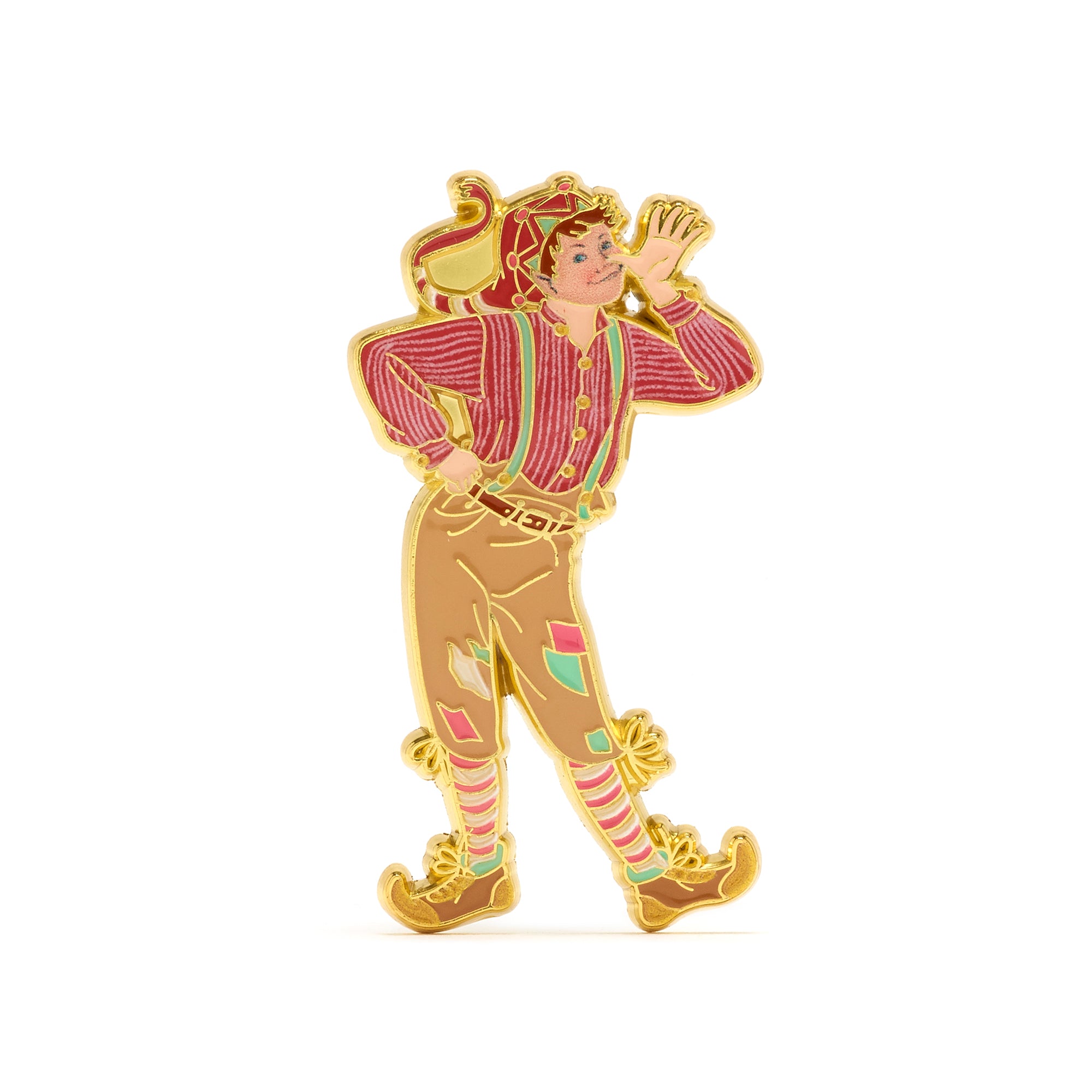 One of Father Christmas' favourites in his Lapland Pin Badge collection, Conker the Silly Elf is full of festive mischief and fun. This 4cm soft enamel badge features glossy details and a rubber clasp for a secure and comfortable fit.